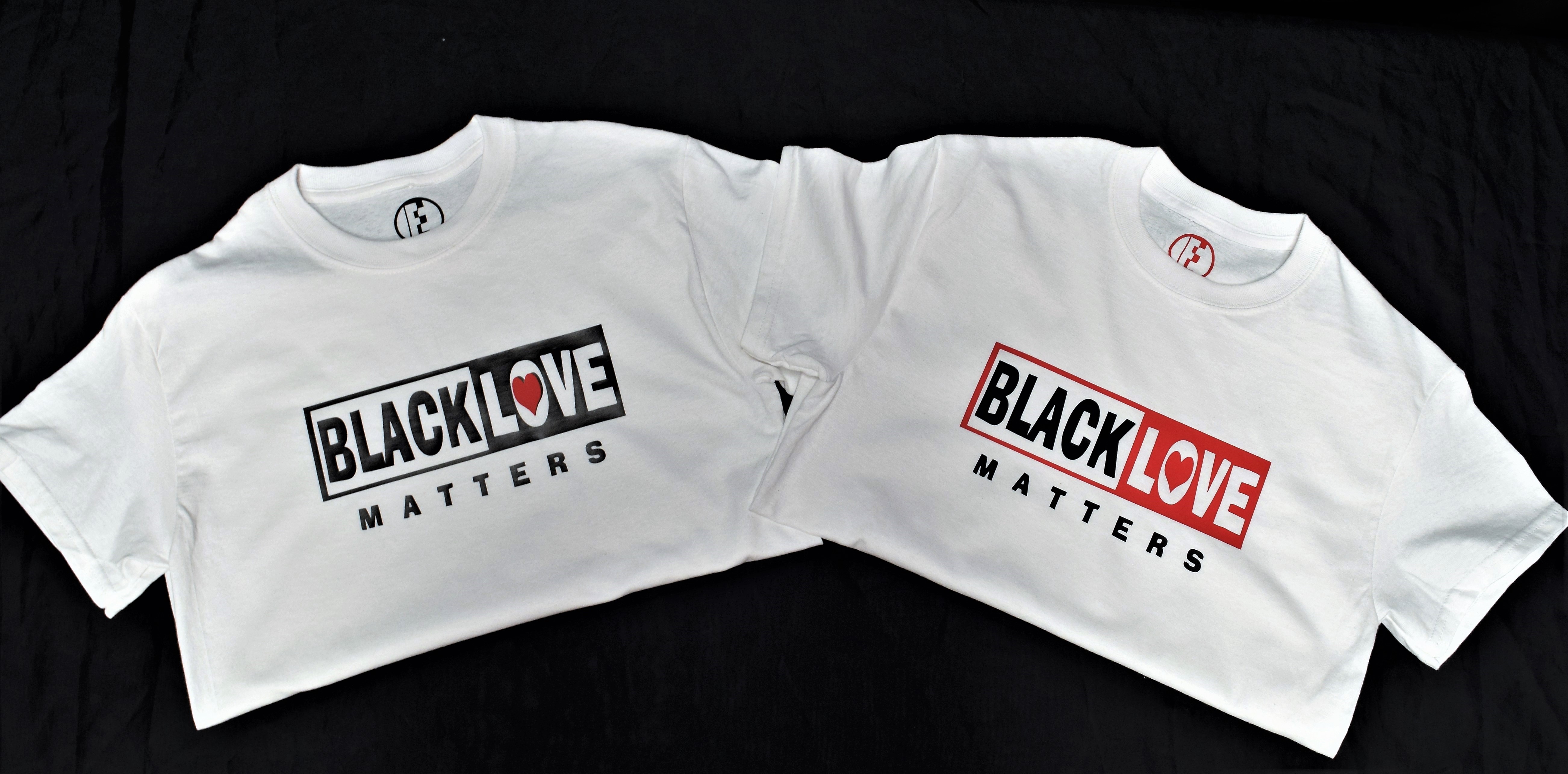 White Shirt with Black Print w/ red heart 100% Preshrunk Cotton Weighs 5.3oz Double-needle stitching throughout Taped shoulder-to-shoulder Seamless rib at neck
